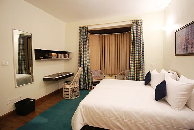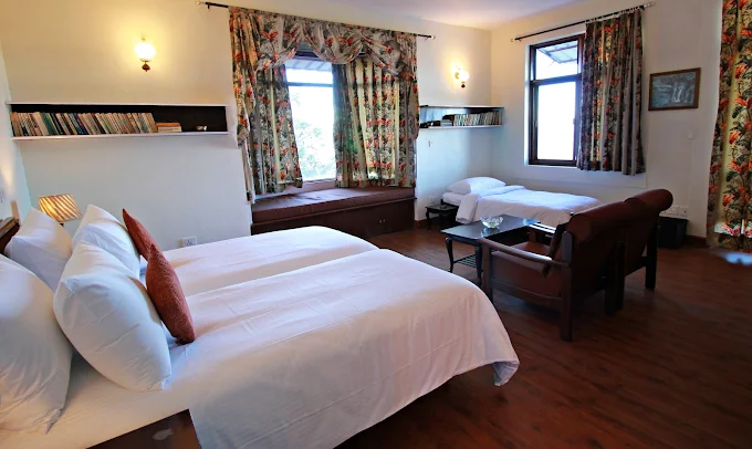 Perched quietly above the bustle of Mussoorie, Trishul feels less like a hotel and more like a hidden mountain home. With just a handful of rooms spread across a large property, it trades luxury for space, silence, and sweeping valley views, the kind that make you pause without even realizing it. Mornings start with clouds drifting past your window, and evenings slow down with cold air and complete stillness. It’s simple, peaceful, and exactly where you go when you want the mountains without the noise.